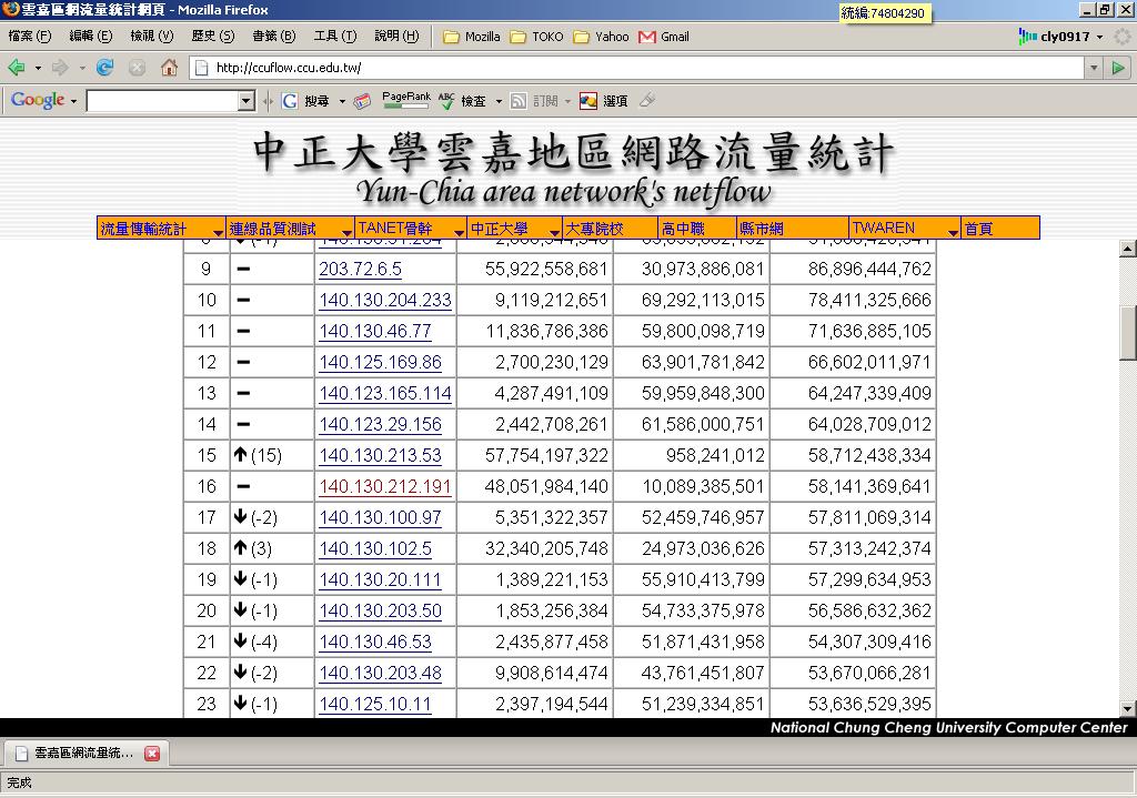 難得有兩個IP可以上排名, 其中一個是宿網, 一個是校園網路.